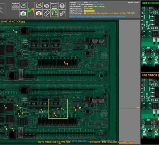 Le réseau neuronal détecte automatiquement les défauts tels que les composants mal alignés, positionné, manquants et les courts-circuits. Peu importe le matériau du circuit imprimé, la couleur ou le type de composants utilisés, sans programmation pour un gain de temps garanti. Ce système détecte aussi les défauts de placement SMT sur la couche de pâte à braser après le placement des composants. En utilisant le même système AOI qui sait dans quelle étape de processus de fabrication se trouve le PCBA, s'adapte et recherche les défauts possibles. Le réseau neuronal utilise un «circuit imprimé OK» (GOLDEN SAMPLE) pour comparer d'autres circuits/panneaux en se basant sur une seule photo. Le logiciel détecte et met en évidence en quelques secondes les éventuels défauts sur les PCB que vous souhaitez inspecter. Ensuite, cet outil marque sur la photo les zones nécessitant une vérification par un technicien.