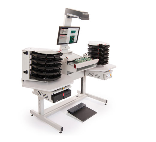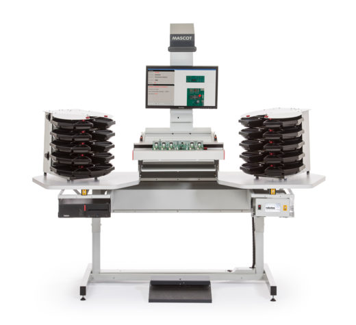 MASCOT veille à ce que le bon composant soit placé au bon endroit et dans le bon sens à chaque fois. Réduisez le temps d'assemblage, et jusqu'à 60% votre nombre d'erreur commises par opérateurs !* *certifié par nos clients Mascot ne nécessite pratiquement pas de formation et permet, même pour les opérateurs non expérimentés, de pouvoir commencer la construction des PCB immédiatement. Les changements de programme peuvent être faits simplement et rapidement. Les instructions de travail sont assistées par informatique et affichées à l'écran afin d'avertir l'opérateur de l'information sur le composant : images, vidéos, instructions de montage... En même temps, un laser à sécurité oculaire indique précisément la position exacte du composant et l'orientation sur le PCB. La polarité est également indiquée par le laser. Simultanément, le bon composant est présenté à l'opérateur par carrousels motorisés.